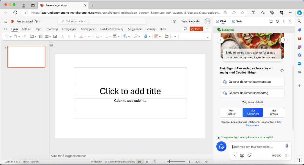 Det er lurt å bruke Co-Pilot når man lager en PowerPoint-presentasjon av flere grunner, hvorav kildebruk er en viktig faktor.