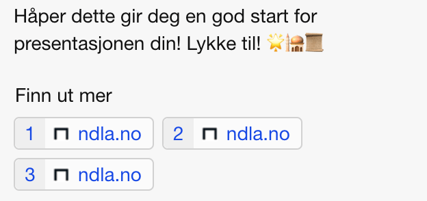 Det som er fint med co-pilot er at man får presentert kildene på slutten. Dette blir presentert på følgende måte:
